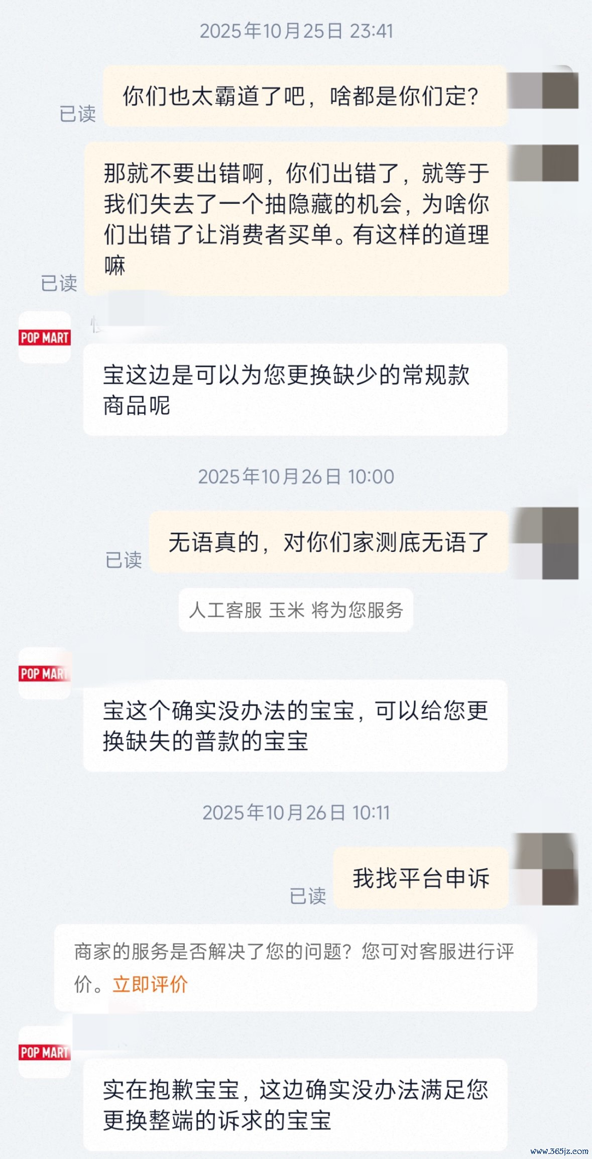 为何拍整端却收到重复款?为何解决方式只能是更换常规款?记者联系泡泡玛特方进行采访,工作人员表示,将反馈相关问题。但截至发稿,记者并未收到回复。