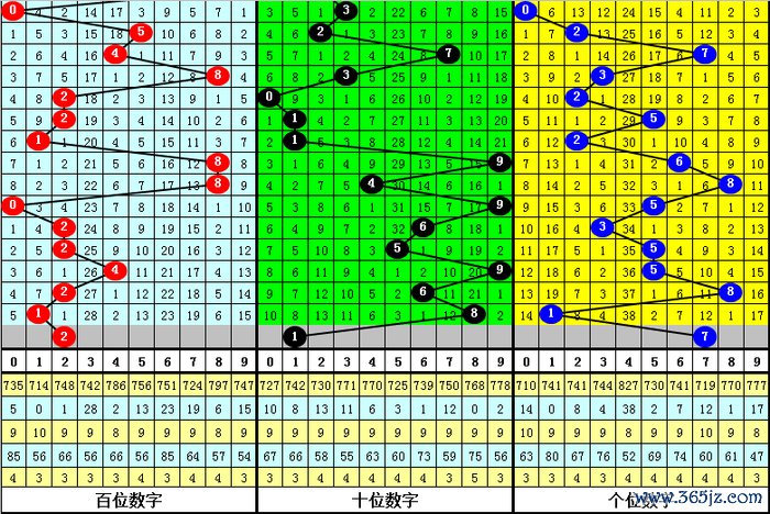 在连续10期开奖中,和值振幅分别为:4-4-19-3-6-3-1-6-2-6,开始上升,和值比较分散,本期预计和值小幅调整,出现在中部区域。